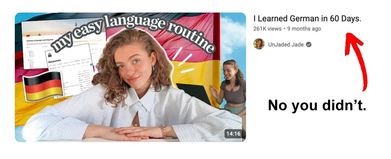 Despite what the clickbait videos across YouTube tell you, there is no hack to learning a language quickly. The fool claiming to have learned German in 60 days is lying to you. There are no hacks, tricks, or ways to expedite your language learning journey. In fact, you’re wasting time that you could be studying by seeking out some special method.